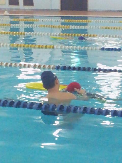 小豪學游泳其實最傷腦筋的是大家也都知道的他對一件事或過程都有他的堅持,例如好不容易他學會了潛水游狗爬式,突然要他用浮板當然不行, 好不容易用浮板游得很高興,要他放掉浮板他也會生氣;原先拿浮板前端身體靠在上面玩,要改成拿後端踢水游,這點真的耗了好久,也哭了很久, 哭到讓老豪想起小豪同學以前愛玩水最後卻怕下水的故事,那時剛好又碰上換場地加上老師小孩出生休息了一陣,也很怕他真的突然害怕游泳起來。 其實有點想和老師商量不要逼他那麼緊的念頭....